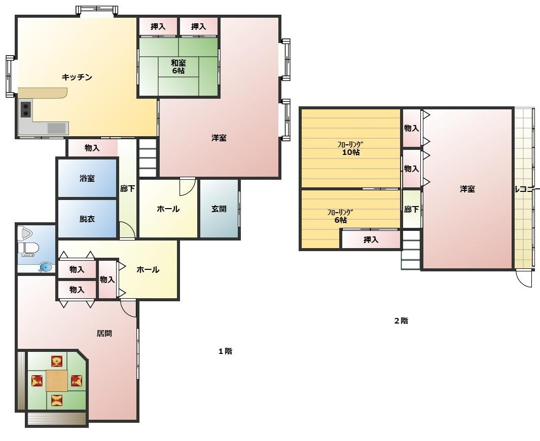 和室×1、洋室×1、リビング、DK、トイレ、洗面脱衣室、風呂 |